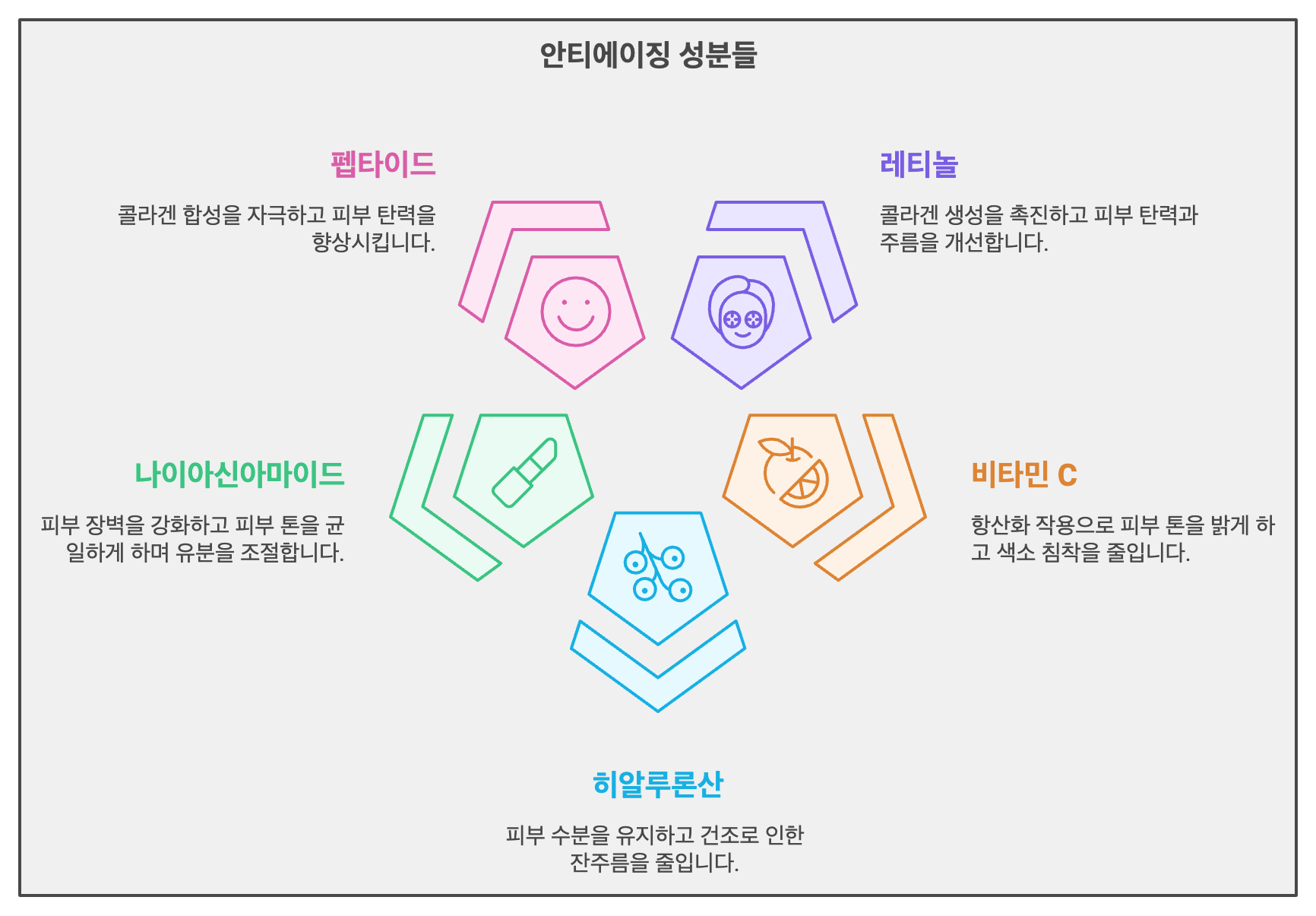 안녕하세요! 시간이 지나도 아름다움을 유지하고 싶은 모든 분들을 위해 오늘은 안티에이징 화장품 성분에 대해 알아보겠습니다.
